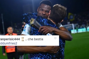 夺冠在即!佩里西奇在国米社媒发沙漏表情,赞邓弗里斯:真是野兽