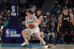 体育资讯04月15日讯 NBA东部附加赛,东部第九的黄蜂在主场经历加时以127-126险 胜淘汰东部第十的热火,将在下一场附加赛中对阵76人和魔术的负者。
